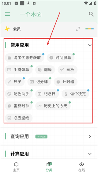 1、在分类页,能看到常用应用列表,选对应功能就能进入相应工具页面,开启实用功能哦。