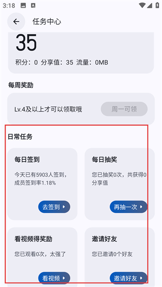 2、任务中心:你可以通过完成任务获得积分和奖励,比如邀请朋友、签到、分享等。带给你更好的任务领取。