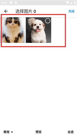 3、在选择图片页面勾选要上传的照片,选好后点击右上角【完成】按钮就能提交上传啦。