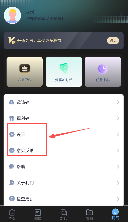 4、最后别忘了探索“我的”页面,这里不仅能管理账户和会员,还能设置翻译偏好、反馈问题,好好设置一番,用起来会更称心呢。