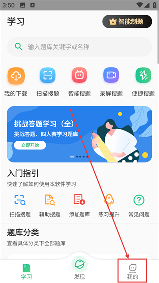 1、首先打开小包搜题,在主页面的分类中找到自己对应的类型;