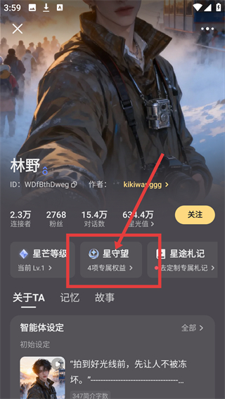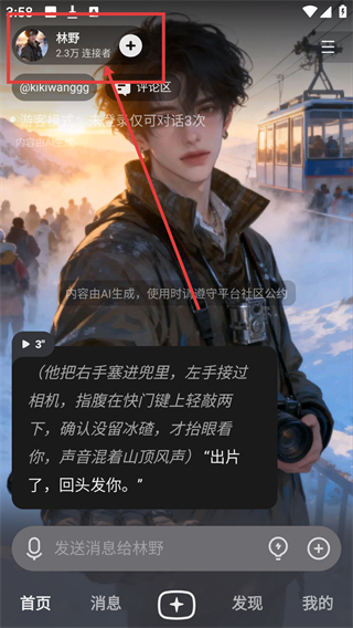 1、在互动界面,点顶部的角色头像区域,可进入该角色的个人信息页面,查看更多详情哦。