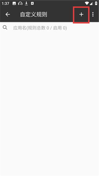2、进入自定义规则页后点右上角加号按钮,能打开选择应用的界面,可挑选要配置的应用哦。