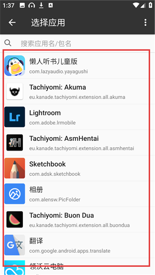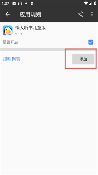 3、在选择应用页选目标应用,比如【懒人听书儿童版】,就能进入该应用的规则配置界面啦。