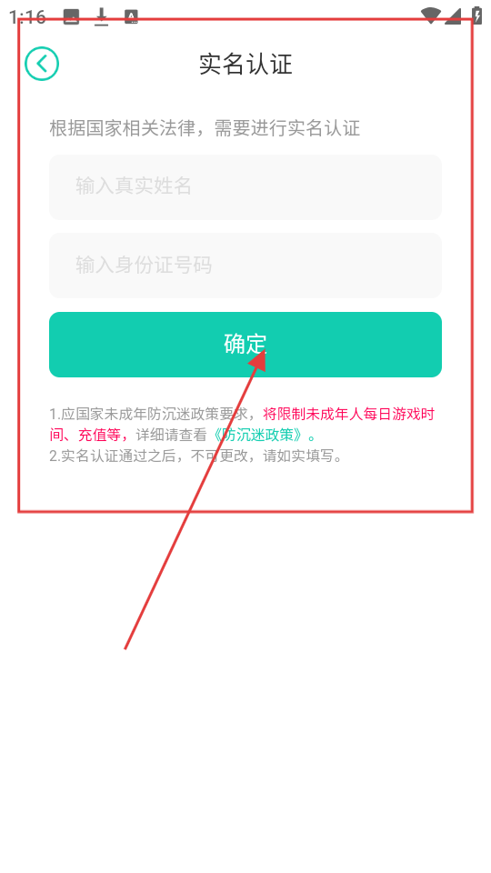 4、实名认证成功后,点击左上角返回按钮,可回到游戏相关页面,继续游戏操作哦。