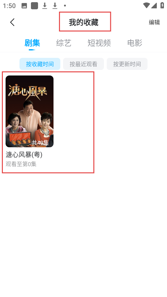 4、之后想找收藏的剧集,就去【我的收藏】页面,能看到像【溏心风暴(粤)】这样收藏的剧集,方便又快捷。