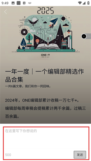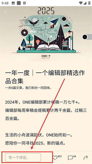 3、在专题详情页点击底部的评论输入框,就能激活评论编辑区域,准备写下自己的想法啦。