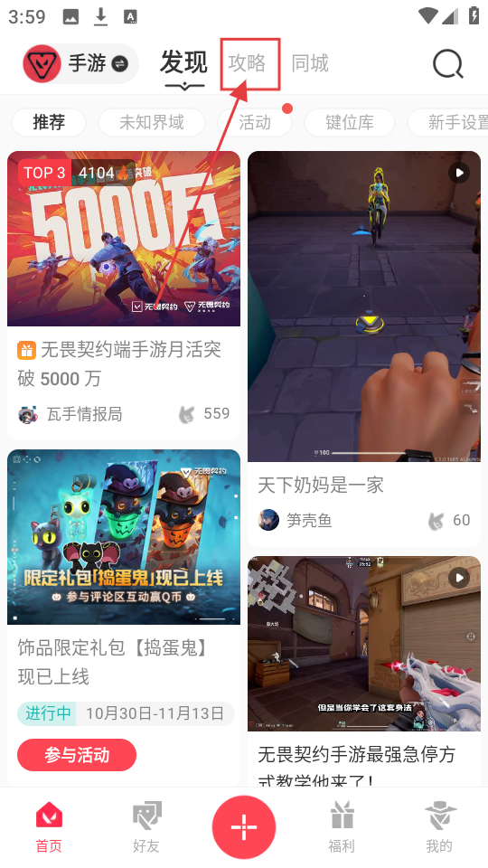 1、点击【攻略】,进入攻略板块,可查看各类游戏攻略内容哦。