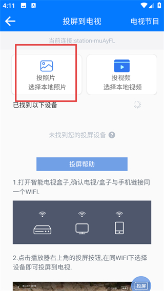 3、在投屏界面点【投照片】选项,能打开本地照片的选择界面,开始挑选要投屏的照片文件呀。