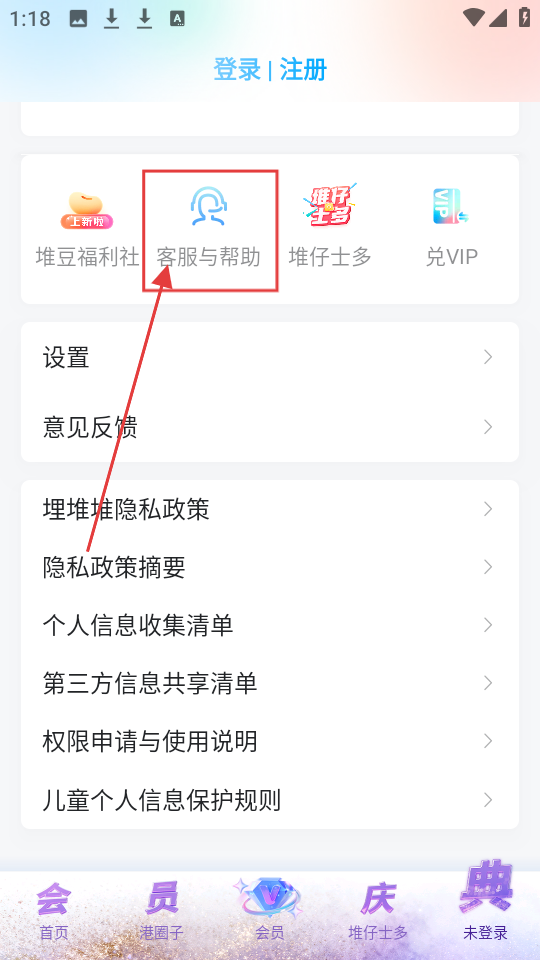 2、在界面中,找到【客服与帮助】选项并点击,进入帮助与反馈页面,以便获取客服支持哦。