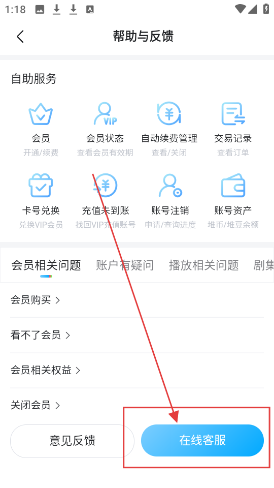 3、在帮助与反馈页面,点击【在线客服】按钮,进入在线客服对话界面,开始咨询问题吧。
