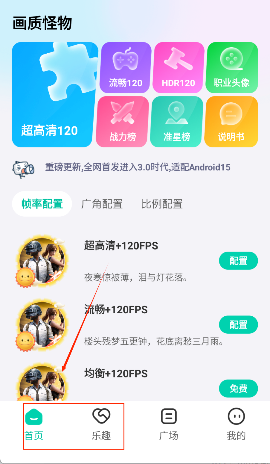 4、针对游戏玩家,软件还提供了强大的“帧率配置”功能。在帧率配置页面,有“超高清+120FPS”等多种预设方案。