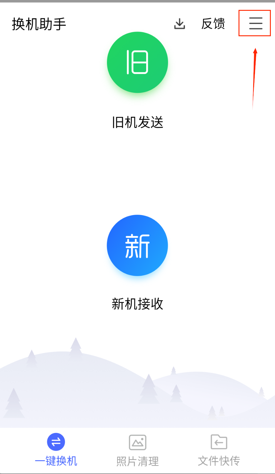 2、在首页可查看旧机发送、新机接收;