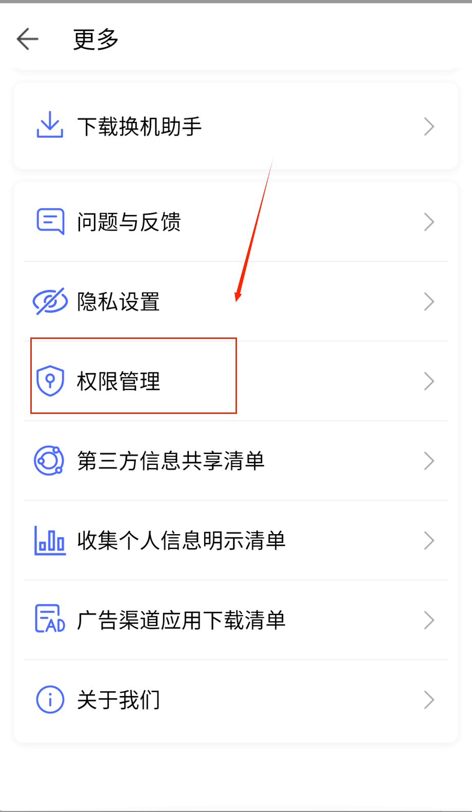 2、权限管理控制软件访问范围,必要权限如存储访问需要开启,非必要权限可关闭保护隐私安全。