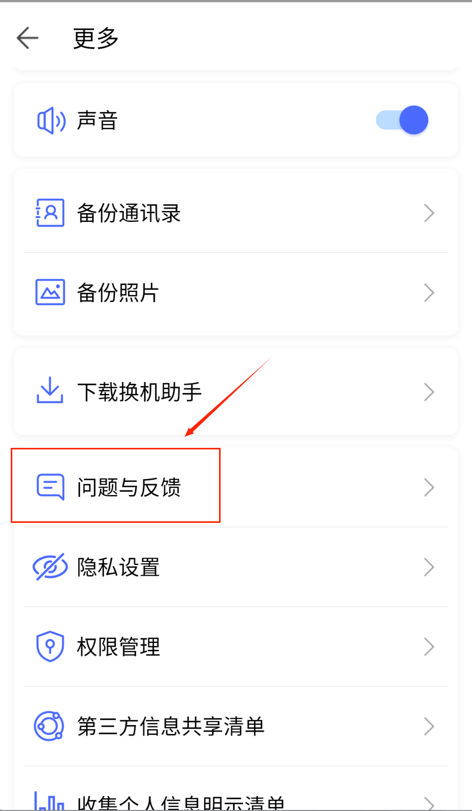 5、会呈现备份、文件管理、隐私设置等。