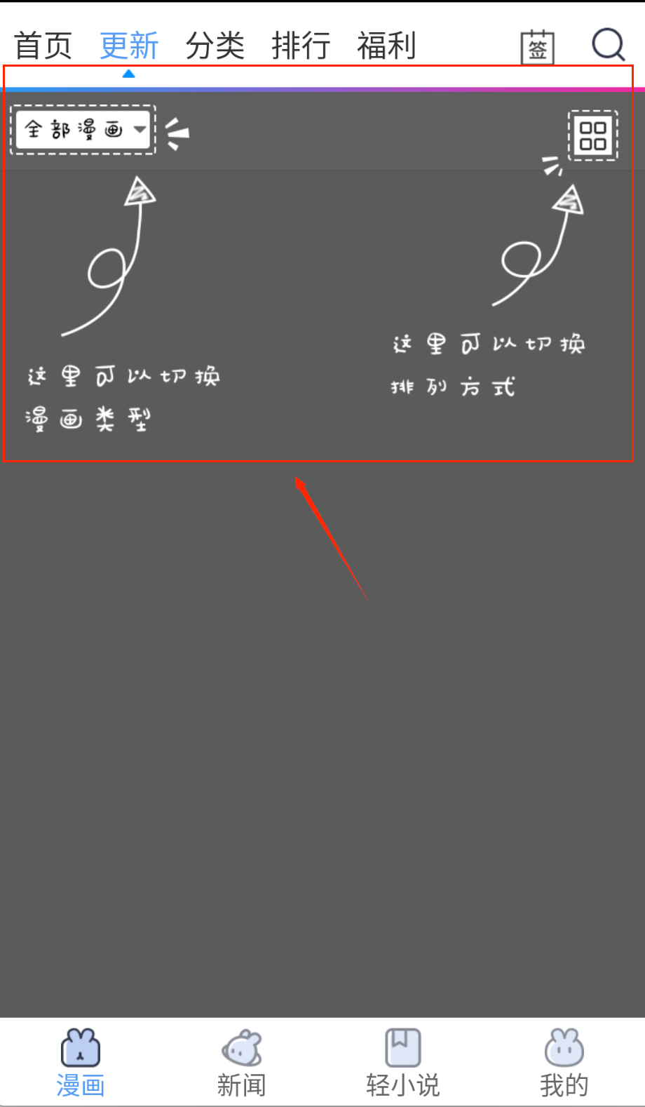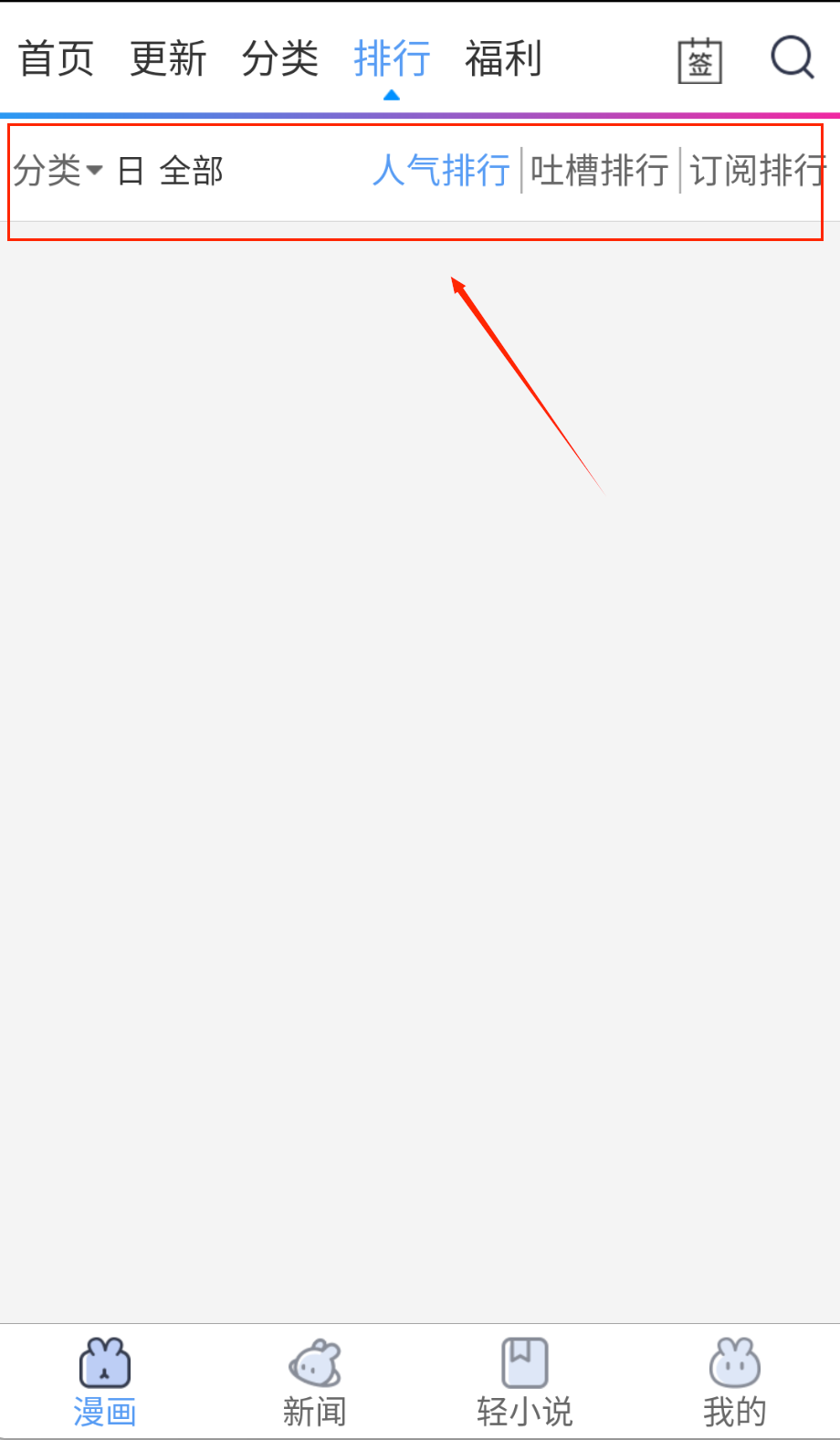 打开动漫之家软件后,默认就是漫画专区,如图所示,分类有很多可以选择;