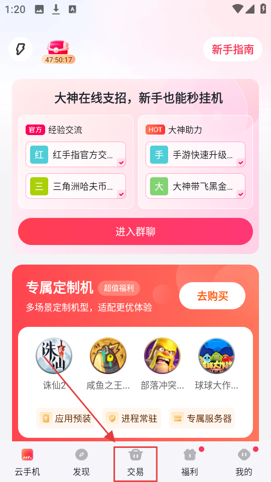 3、登录软件添加一台云手机,新用户可领取一台云手机。