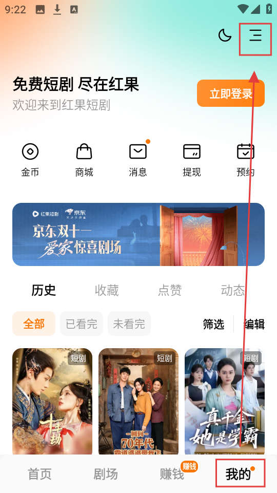 1、在“我的”页面,点击右上角三横线按钮,就能展开功能菜单,查看设置等选项哦。