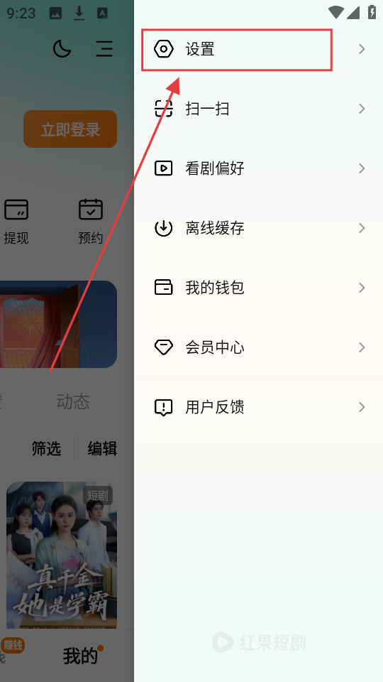 2、展开菜单后,点击【设置】,就能进入设置页面,调整字体大小等功能。