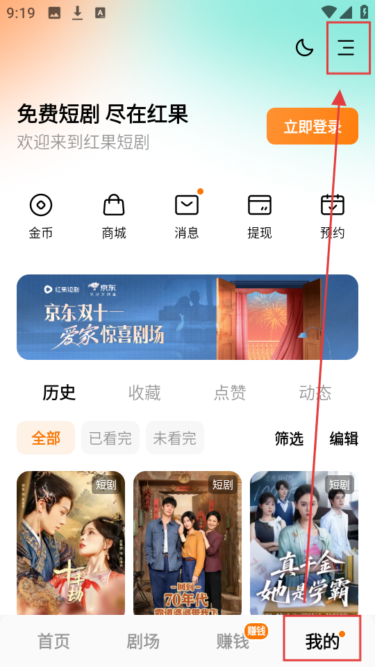 1、我们进入软件的“我的”页面,点击右上角的菜单按钮,就能展开功能菜单啦。