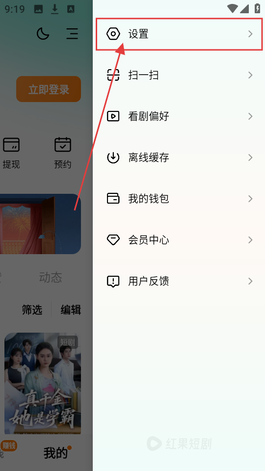 2、展开功能菜单后,点击【设置】,就能进入设置页面哦。