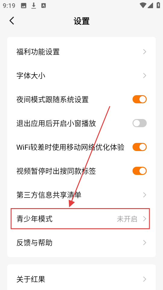3、进入设置页面后,找到【青少年模式】选项,点击它就能进入青少年模式介绍页面呢。