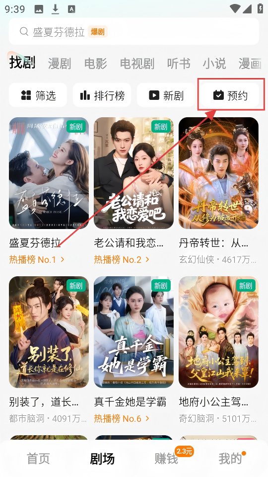 1、在剧场页面,点击【预约】,能进入新剧预约页面,超多新剧等你选,超棒。