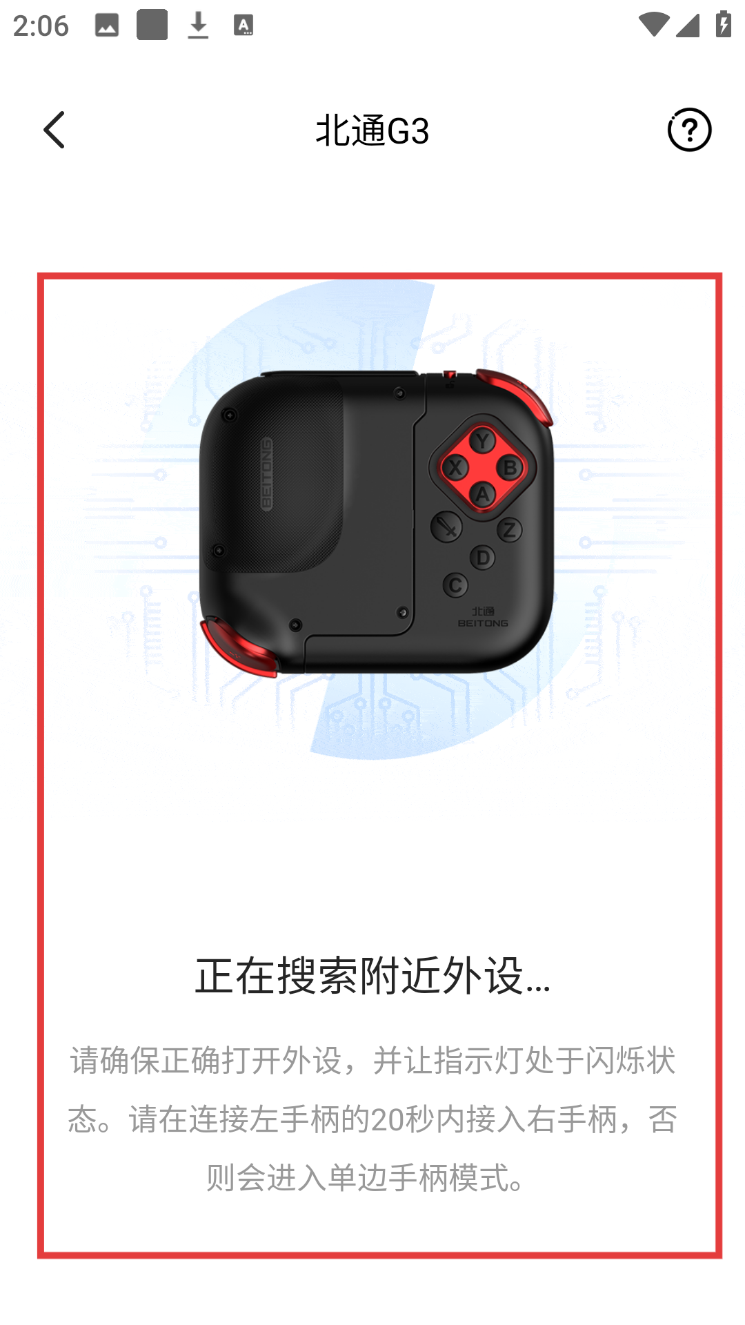 4、进入北通G3连接页面后,确保外设处于正确状态,等待搜索并连接附近外设即可啦。