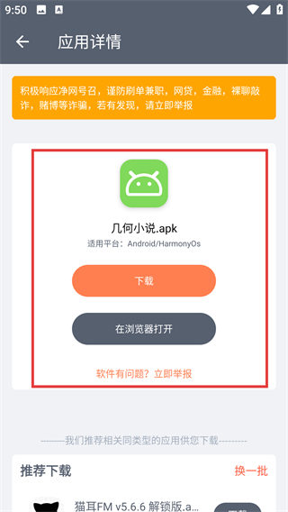 4、进入应用详情页后,点【下载】按钮就能开始下载软件,也能选在浏览器打开查看哦。