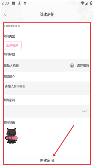 3、在创建房间页面,选择视频、填写标题、简介等信息后,点击【创建房间】,即可完成房间创建啦。