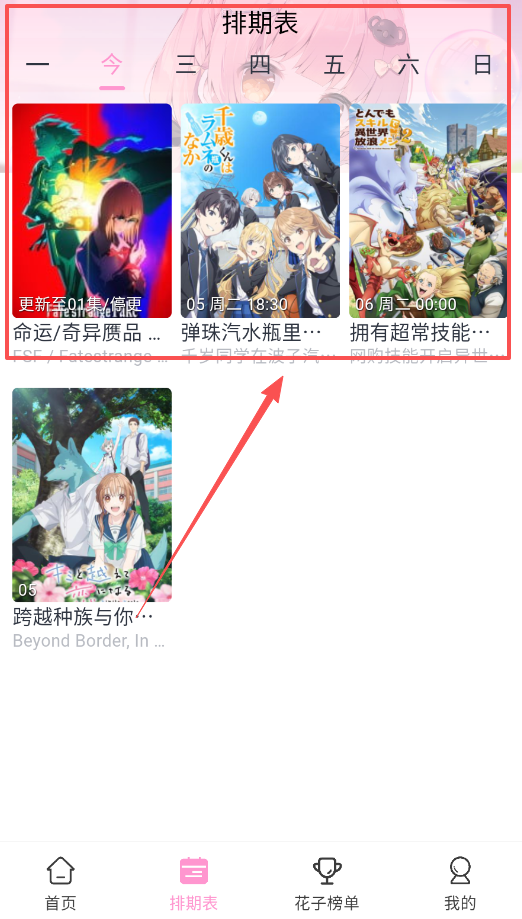 2、如果想追更或者怕错过更新,可以点开排期表功能,这里按周一到周日列出了每天的具体更新时间。