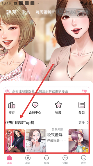 1、在漫画页,选热门榜单里的漫画条目,就能进入该漫画的详情页面,查看内容信息哦。