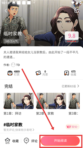 2、进入漫画详情页后,点【开始阅读】按钮,就能进入漫画的阅读界面,开始看内容啦。