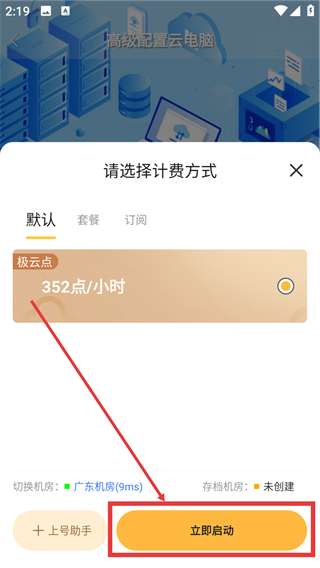 4、在计费方式选择弹窗里选好方式后,点【立即启动】,就能开启云电脑的使用啦。