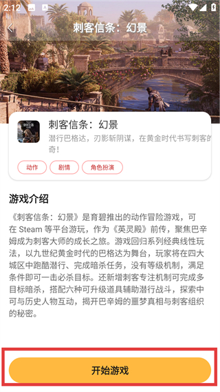 1、在游戏页面找到目标游戏(如【刺客信条:幻景】),点击其封面就能进入该游戏的详情页面啦。