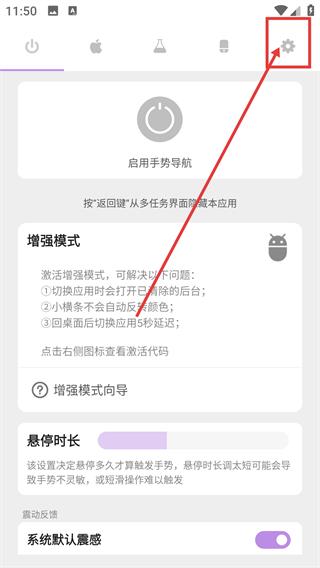 1、在设置页点顶部的齿轮按钮,能切换到其它设置界面,后续可调整动画等更多功能选项啦。