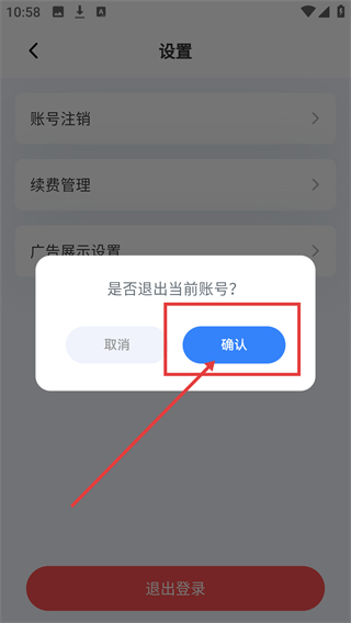 4、在弹出的确认框点击【确认】按钮,就能完成当前账号的退出,操作超简单哦。
