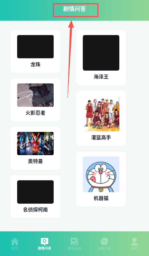 3、如果你是动漫迷,可以逛逛剧情问答模块,里面准备了龙珠、奥特曼等多种主题的问答。