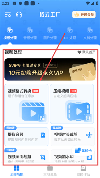1、在格式工厂的全部功能页,点【视频格式转换】选项能进入视频处理页,后续可设置格式转换参数啦。