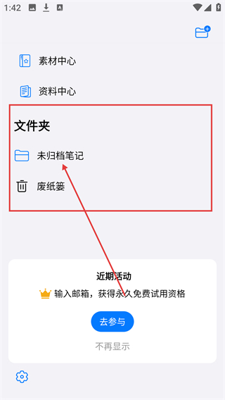 1、在应用的主界面,点击【未归档笔记】选项,可进入对应文件夹,查看已保存的笔记内容啦。
