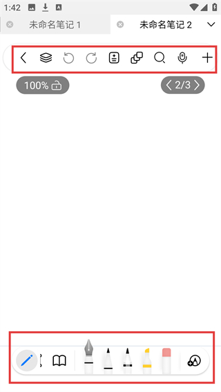 4、进入笔记编辑页面后,可使用顶部的功能按钮与底部的笔刷工具,编辑或美化笔记内容呀。