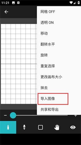 2、在展开的功能菜单里选择【导入图像】选项,就能进入图片选择界面,准备导入素材到画布哦。