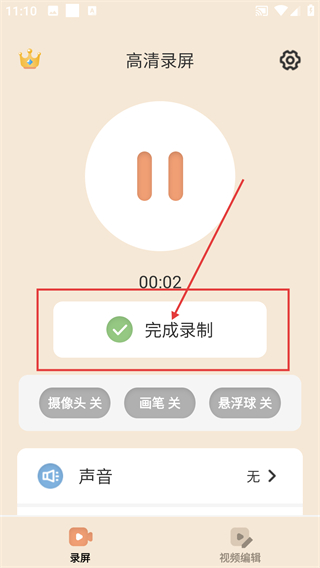 3、录制过程中想结束的话,点【完成录制】按钮,就能停止当前的屏幕录制操作哦。