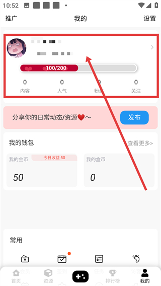 3、登录后进入【我的】界面,点击个人信息区域,准备查看详细的个人资料哦。