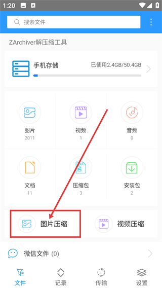 1、在文件页点【图片压缩】选项,能进入图片压缩设置页,后续可处理图片压缩的相关操作啦。