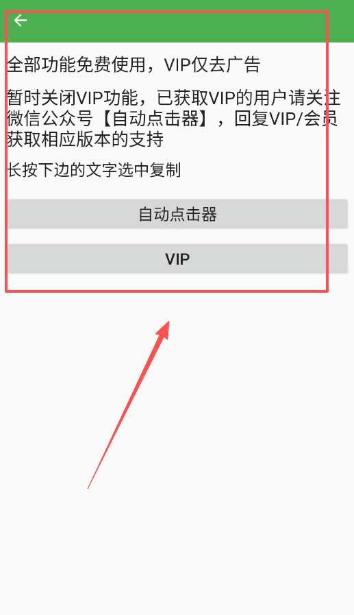 4、所有点击和录制功能都免费,vip唯一的作用就是去广告,可以通过官方微信公众号回复vip来获取纯净版本。