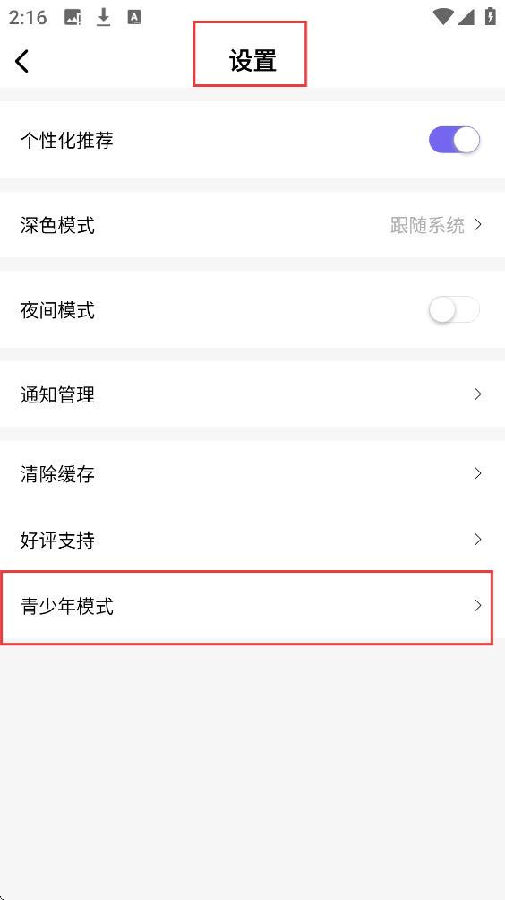 4、进入设置页面,点击【青少年模式】,可进行青少年模式的开启或关闭设置哦。