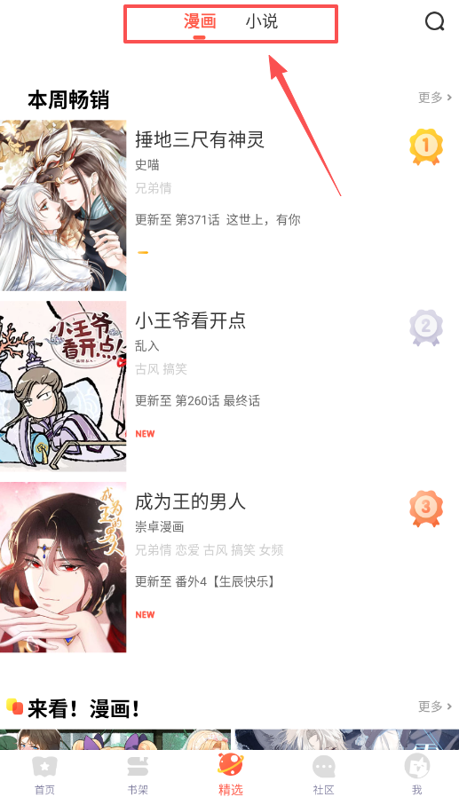 1、首先从首页的精选页面逛起,可以看到本周畅销和编辑推荐的作品,直接点开就能开始阅读,遇到喜欢的别忘了加入书架。