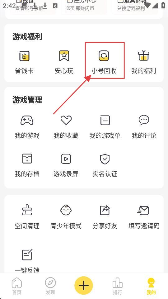 2、在个人中心页面,找到【小号回收】选项并点击,进入小号回收界面,以便查看回收记录哦。