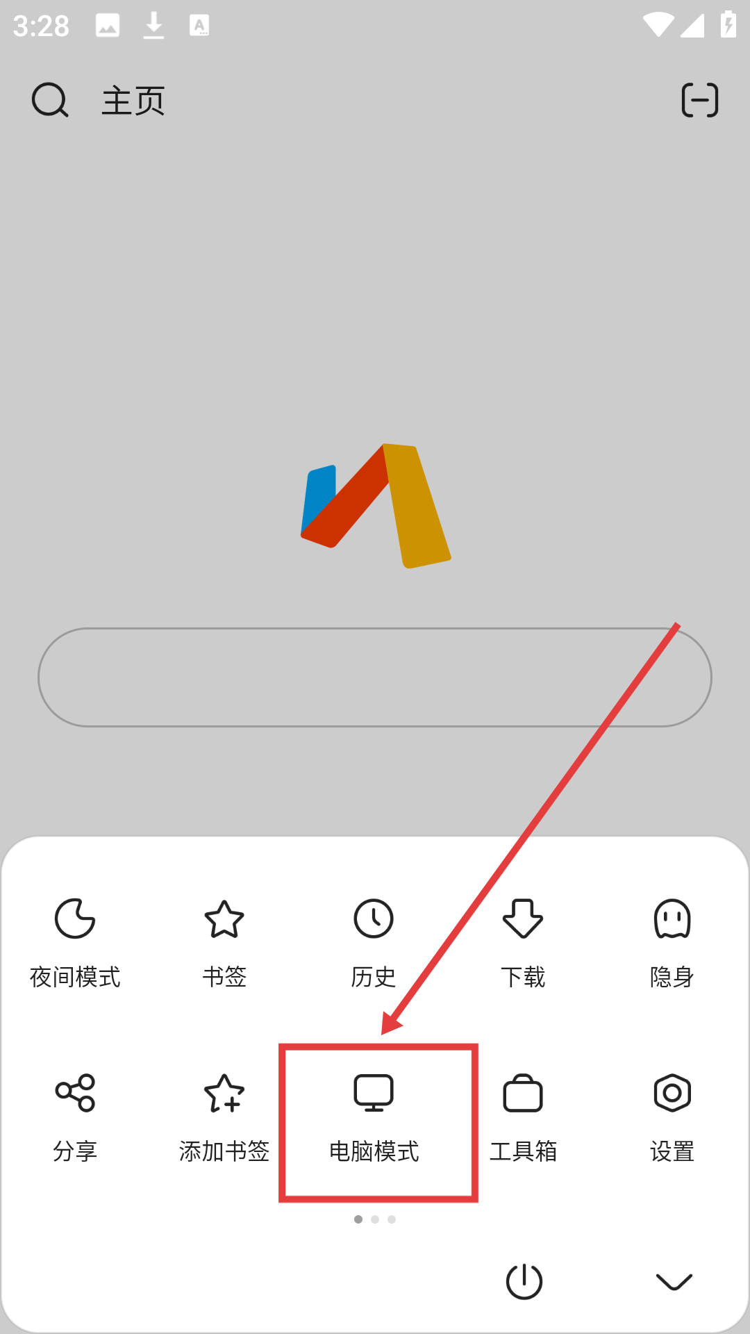 1、在主页界面点击右下角菜单按钮,展开功能选项栏,准备切换浏览模式哦。